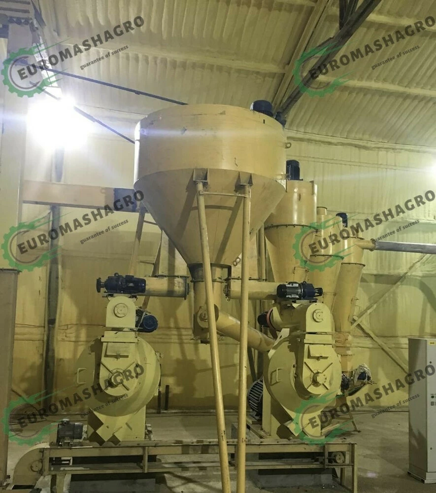 Лінія грануляції (пелетирування) продуктивністю 1,2 т/г на базі прес-гранулятора ОГМ-1,5.Пропонуємо комплект обладнання технологічних ліній для виготовлення паливних гранул (пелет), а також технологічних ліній по виробництву гранульованих комбікормів.